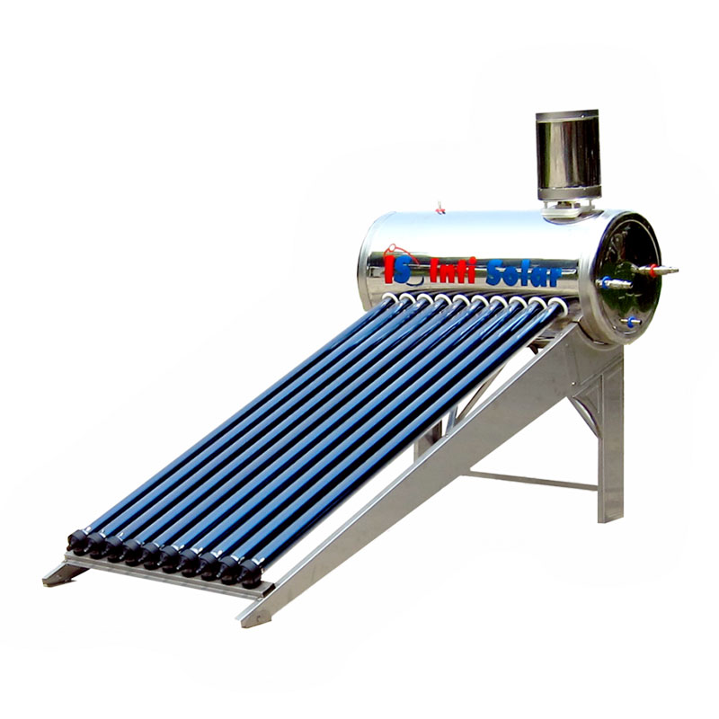 Inti Solar tabung vacuum sistem pemanas Indirect dilengkapi dengan heat exchanger (pemindah panas). Air panas yang ada di dalam tangki hanya digunakan sebagai media untuk memanaskan Heat Exchanger. Dengan sistem Indirect, temperatur air panas lebih stabil dan konstan serta aliran air lebih deras karena dioperasikan dengan tekanan air (pressure).